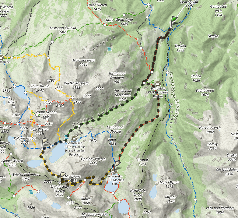 Suma podejść: 1470 m, Suma zejść: 1461 m